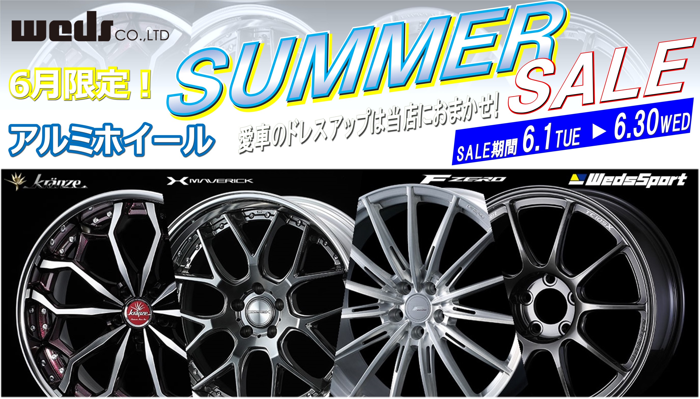 6月限定 アルミホイール Summer Sale スタッフ日記 タイヤ館 上越 新潟県のタイヤ カー用品ショップ タイヤからはじまる トータルカーメンテナンス タイヤ館グループ